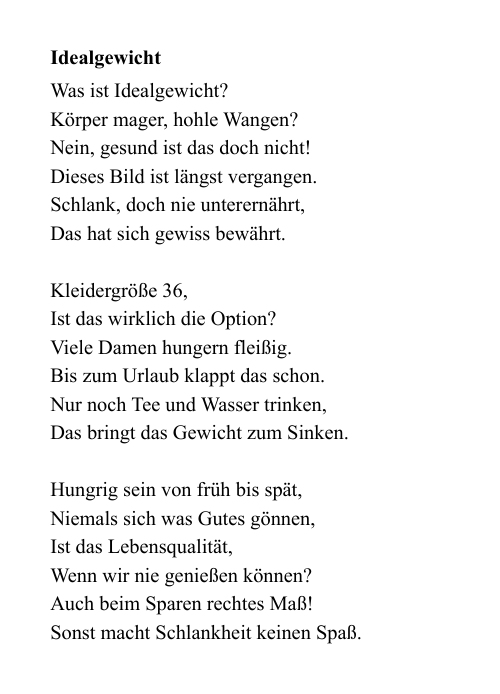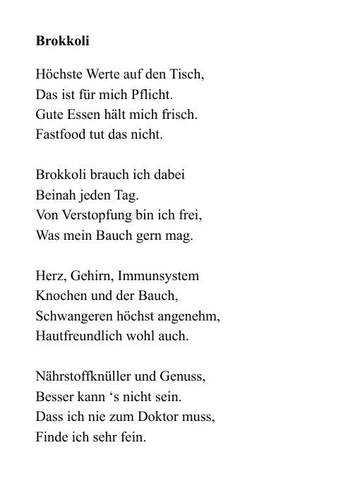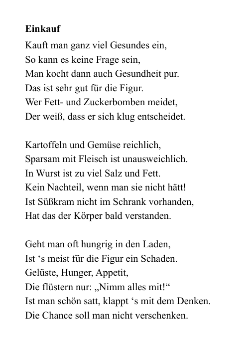 Gesunde Ernährung schmeckt gut und kann Arzneimittel ersetzen - Verse in lustiger Reimform
